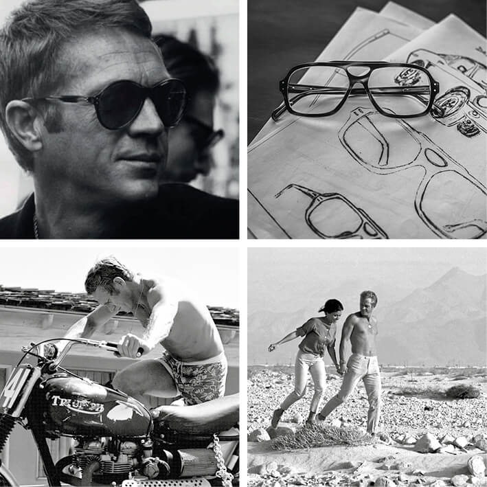 Steve McQueen brillen zijn het resultaat van een bijzondere menselijke connectie, verenigd door gedeelde passies. Deze brilcollectie brengt autoliefhebbers, motorfanaten, vrije geesten en filmliefhebbers samen, en roept de chique en elegante geest van de jaren ’60 en ’70 op, geïnspireerd door Steve McQueen’s tijdloze stijl.